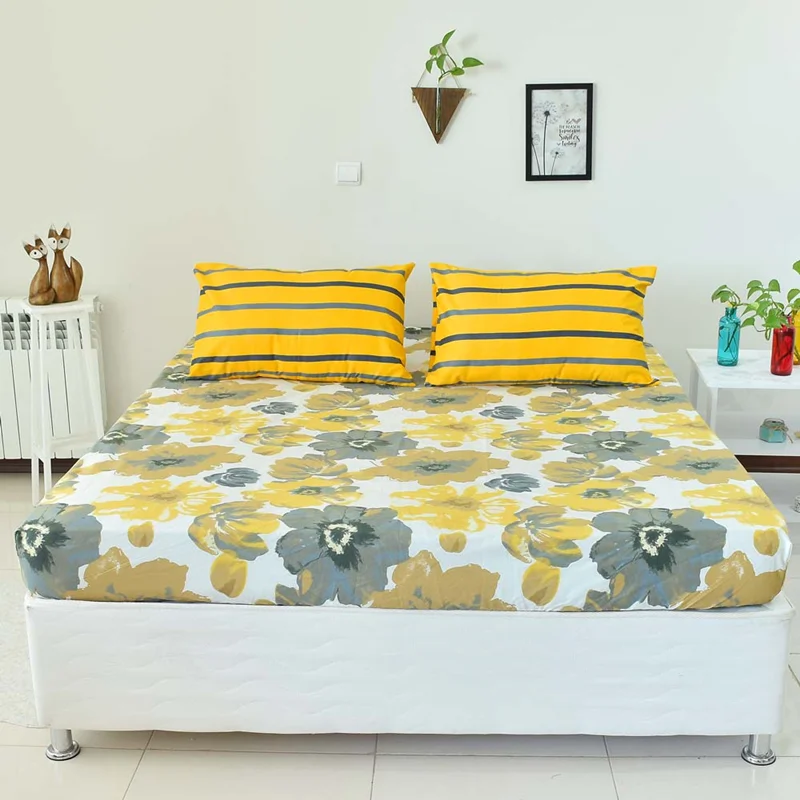 این سرویس ملحفه دونفره در واقع شامل ملحفه کش دار تشک و روبالشتی است و در 2 سایز انتخابی موجوده.