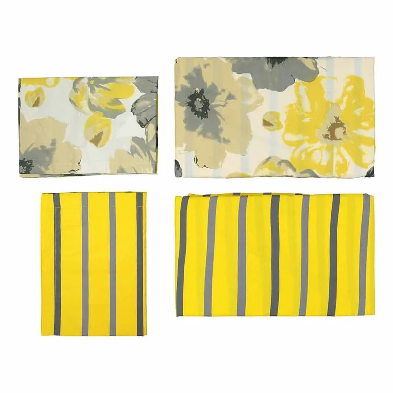 رنگ طوسی برای فضای اتاق خواب بسیار مناسب است و این روزها طرفداران بسیاری پیدا کرده. ترکیب رنگ طوسی با رنگ زرد زیبایی آن را چند برابر میکند. و ترکیب طرح راه راه و گلدار هم یکی از دلایل پر طرفدار بودن طرح اندیم است.