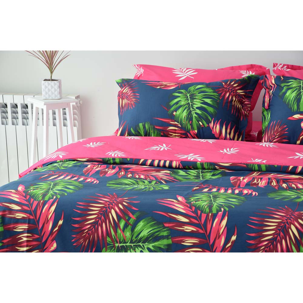این کاورست شامل یک ملحفه کش دار، دو جفت روبالشتی و کاورلحافه. که ملحفه ، یک سمت کاورلحاف و یک جفت روبالشی از پارچه زیر، و یک جفت روبالشتی و یک سمت کاورلحاف از پارچه رو دوخته شده.
