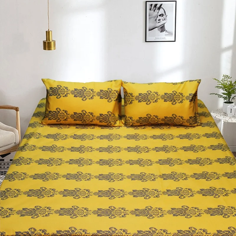 ست کاورلحاف شامل ملحفه کش دار،روبالشتی ،روکوسنی و کاورلحافه که ملحفه کش دار،روکوسنی و یک سمت کاورلحاف از پارچه راه راه زیر و روبالشتی (والان دار) و یک سمت کاورلحاف از پارچه گلدار رو هست. این محصول در دوسایز تولید شده و ارتفاع ملحفه کش دار آن 25 سانت در نظر گرفته شده.