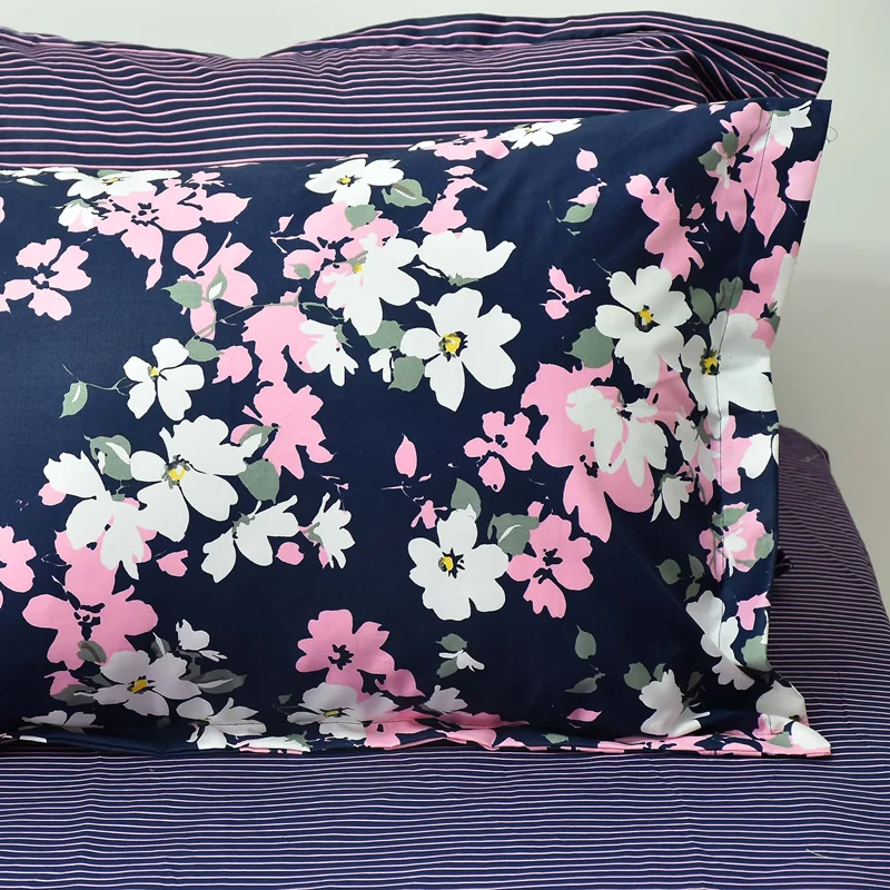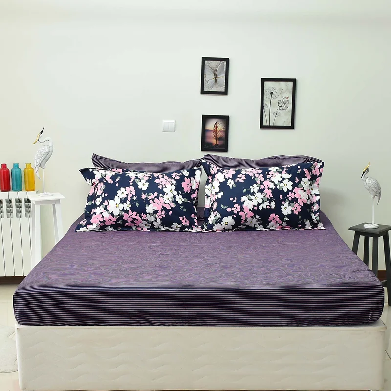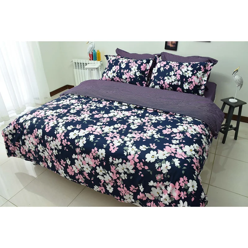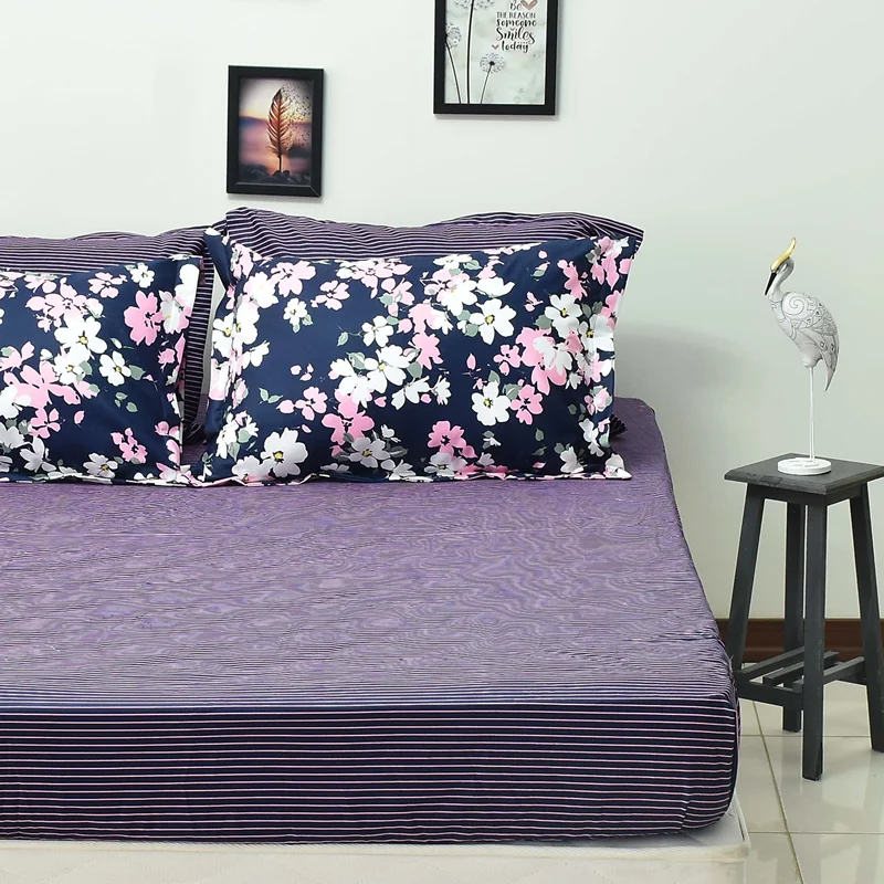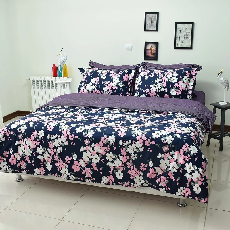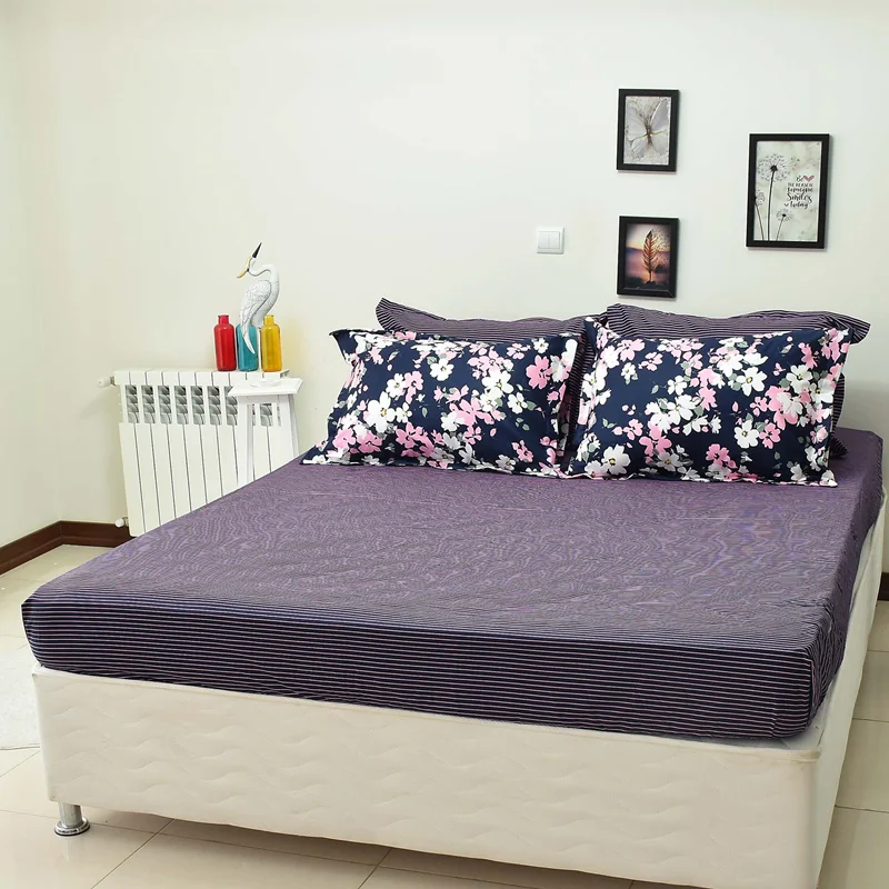 این کاور ست شامل ملحفه کش دار، 4 عدد روبالشتی و کاورلحاف است. که ملحفه، 2عدد روبالشتی و یک سمت کاورلحاف از پارچه راه راه و 2 عدد روبالشتی و یک سمت کاورلحاف از پارچه گلدار است.