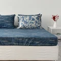 این ست شامل یک ملحفه کش دار تشک، یک لحاف دورو و یک جفت روبالشی (یکی راه راه و یکی گلدار) ، که مناسب تشک یکنفره استاندارد با عرض 90 می باشد.