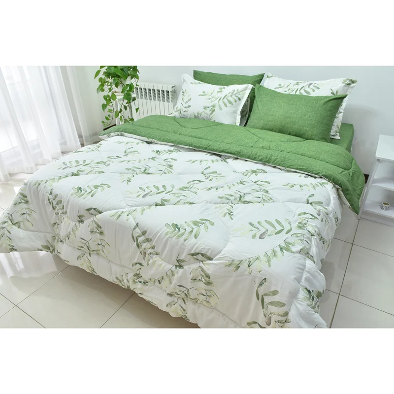 این ست شامل یک ملحفه کش دار تشک، یک لحاف دورو و دو جفت روبالشی (2تا ساده و 2تا طرح دار) ، که مناسب تشک دونفره استاندارد با عرض 160 می باشد.