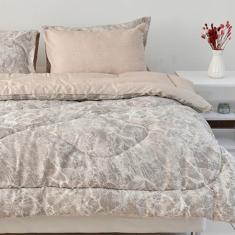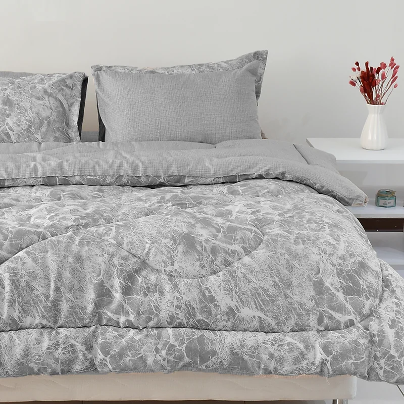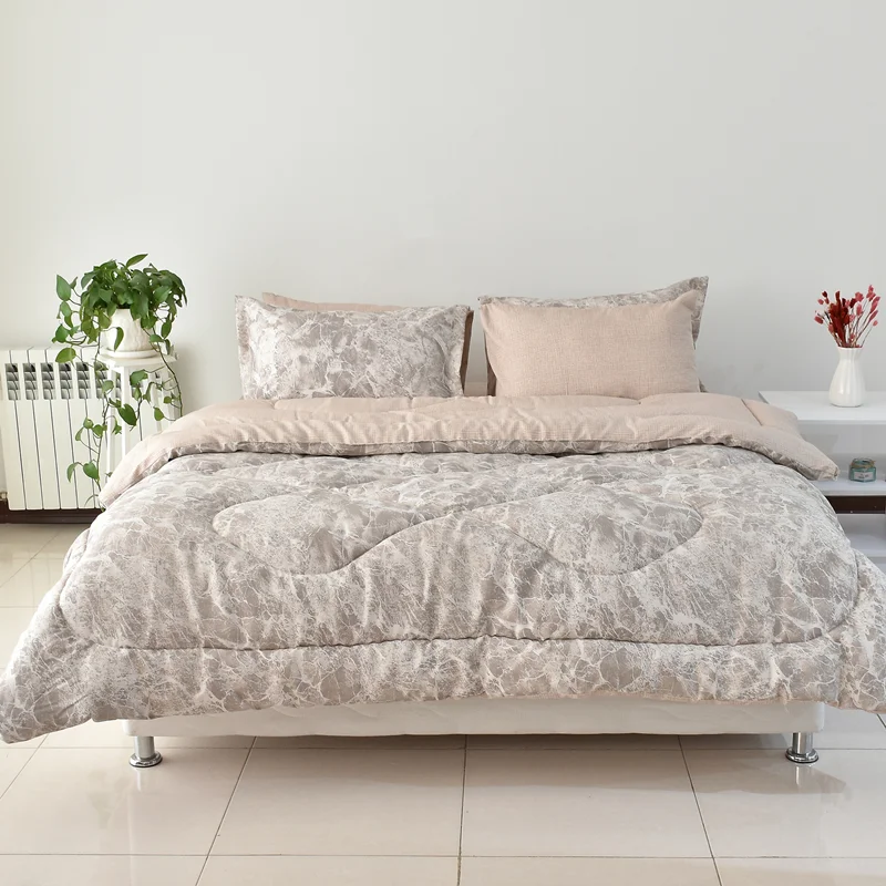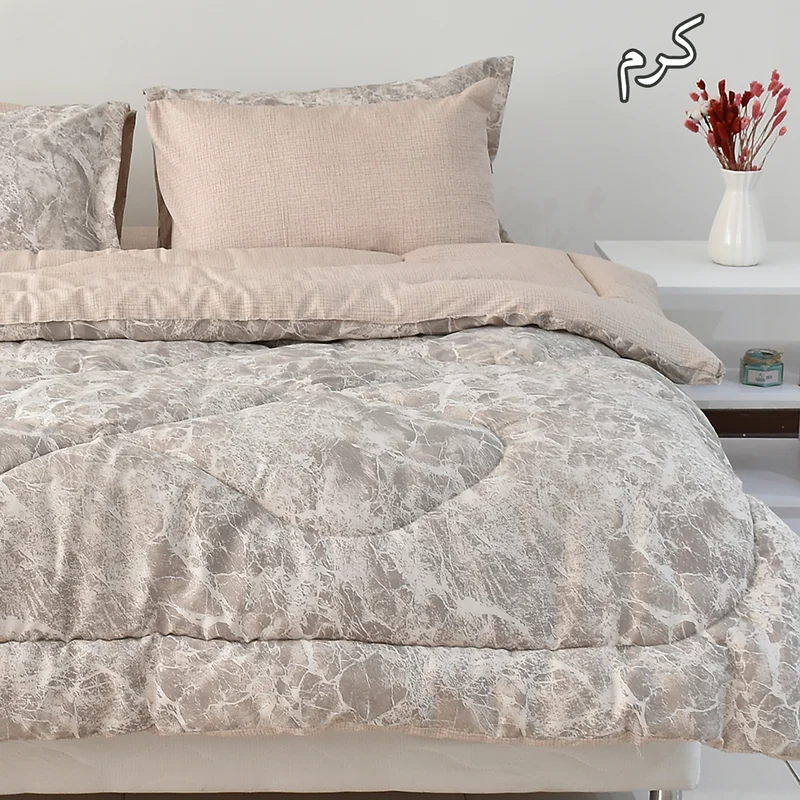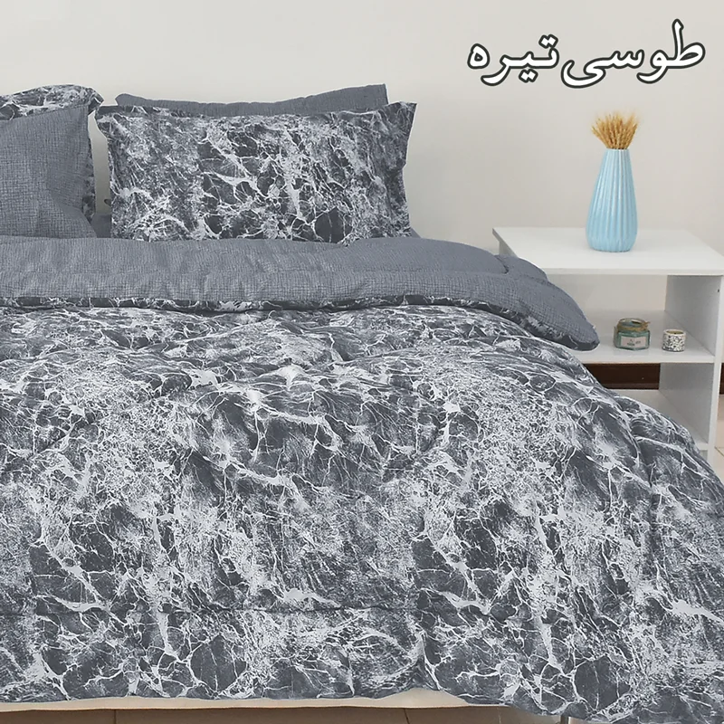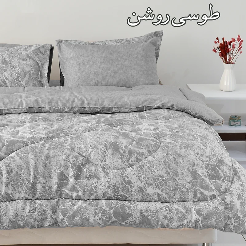 هم گرم و هم سبک، هم لطیف و هم با دوام، هم زیبا و هم همخوان با سایر اجزای اتاق خواب، اینها ویژگی هایی هستند که مشتریان سرویس روتختی در هنگام خرید به آن توجه می کنند. لحاف سبک با ضخامت بالا یکی از جذابترین گزینه ها در انتخاب سرویس روتختی است، طرح Volcano از سری محصولات درجه A بومرنگ با پارچه پلی استر پنبه از یک لحاف 200 در 230، یک عدد ملحفه کش دار مناسب تشک دونفره استاندارد (200x160) و دو جفت روبالشی تشکیل شده است که مطابق تصاویر از پارچه ست زیر و رو تولید شده است، در هنگام خرید به رنگ بندی محصول مطابق تصاویر آلبوم توجه فرمائید، از خرید یک محصول زیبا لذت ببرید.